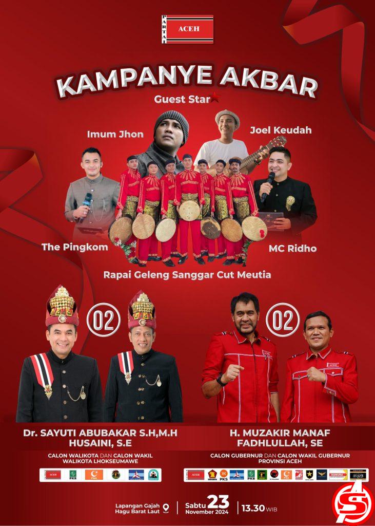 Ia menyebutkan, kampanye akbar itu juga akan dimeriahkan oleh Guest Star, seperti Imum Jhon, Joel Kedah, The Pingkom dan Rapai Geleng Sangar Cut Meutia.