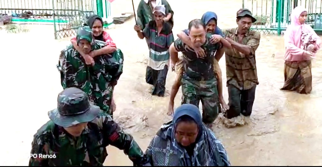 Evakuasi berlangsung dramatis karena derasnya arus banjir yang melanda kawasan tersebut. Dari total 100 KK terdampak, delapan prajurit TNI berjibaku di tengah tingginya debit air untuk menyelamatkan warga, termasuk seorang pasien patah tulang, lansia, dan balita.