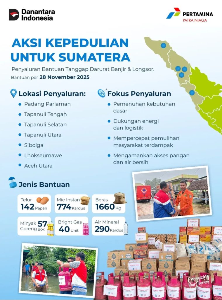 ASPOST.ID- Pasca gangguan pasokan akibat bencana alam, Pertamina Patra Niaga memastikan pasokan energi, khususnya BBM dan LPG, di wilayah Aceh, Sumatera Utara, dan Sumatera Barat kini dalam kondisi aman. Pemulihan operasional pengiriman BBM melalui jalur laut telah berjalan lancar, dengan 19 terminal BBM di Sumatera bagian utara kembali berfungsi normal setelah kapal pengangkut BBM berhasil bersandar.