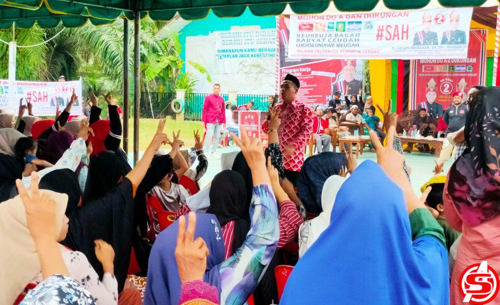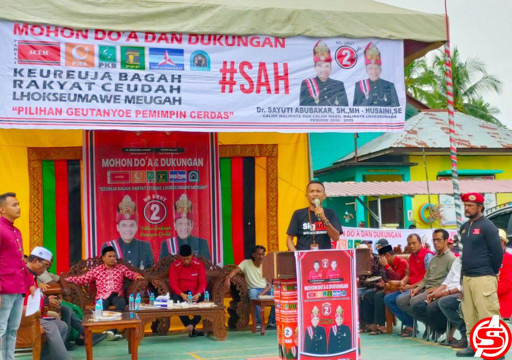 ASPOST.ID- Calon Walikota Lhokseumawe Sayuti Abubakar bersama Calon Wakil Walikota, Husaini POM melakukan kampanye dialogis di Gampong Blang Poroh, Kecamatan Muara Dua, Kota Lhokseumawe, pada Kamis (21/11/2024) sore.