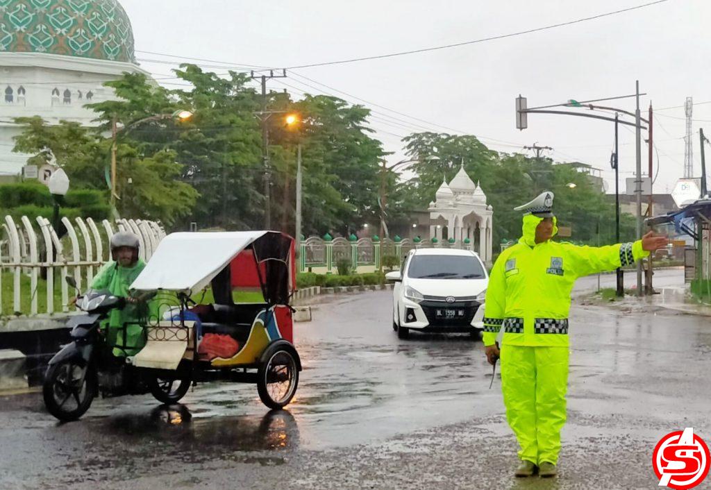 “Terlebih lagi jika hujan yang mengakibatkan macet. Karena itu, personel Sat Lantas hadir memberikan pelayanan kepada masyarakat,” ujarnya.