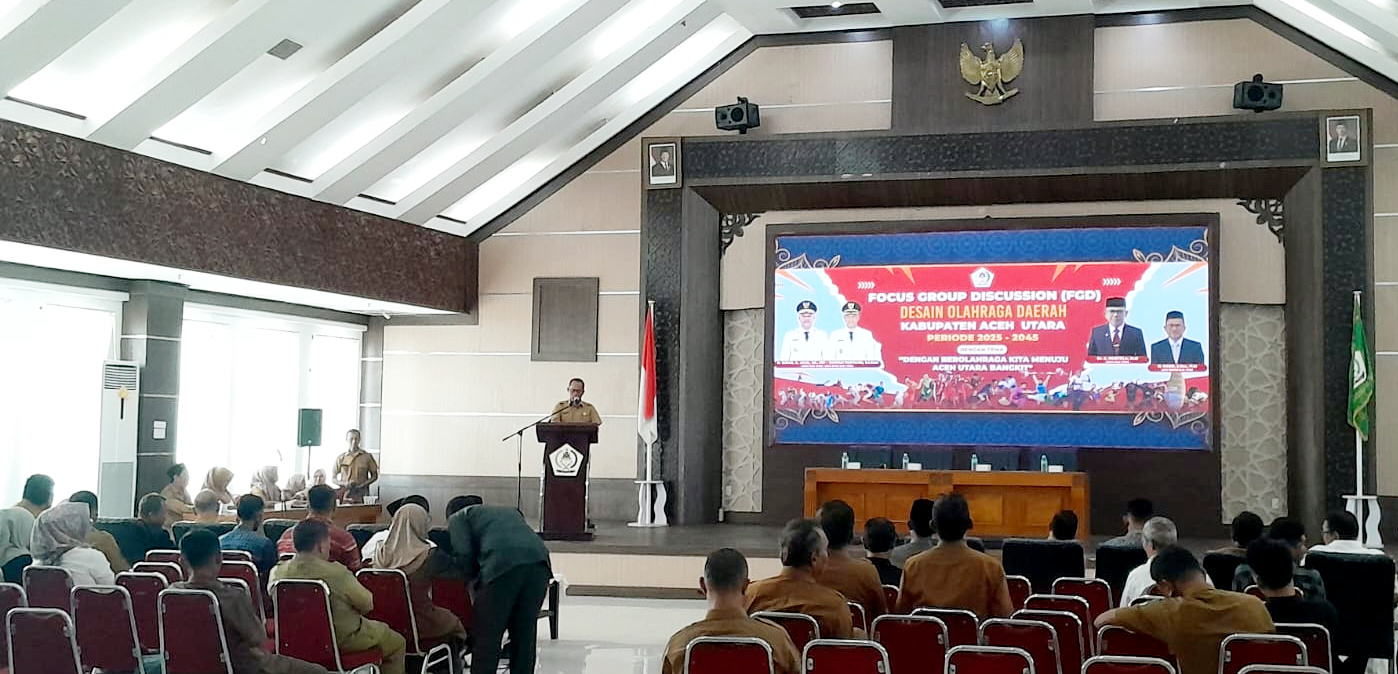 ASPOST.ID- Dalam rangka membangun ekosistem olahraga yang terintegrasi dan berkelanjutan, Dinas Kepemudaan, Olahraga, dan Pariwisata (Disporapar) Kabupaten Aceh Utara menggelar Focus Group Discussion (FGD) Desain Olahraga Daerah (DOD) 2025–2045, Selasa (12/8), di Aula Setdakab, Kantor Bupati Aceh Utara, Lhoksukon.