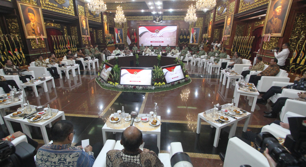 Pertemuan tersebut turut dihadiri Panglima TNI Agus Subiyanto, yang bersama Menhan dijadwalkan menyampaikan paparan mengenai perkembangan terkini strategi pertahanan negara kepada para senior militer.