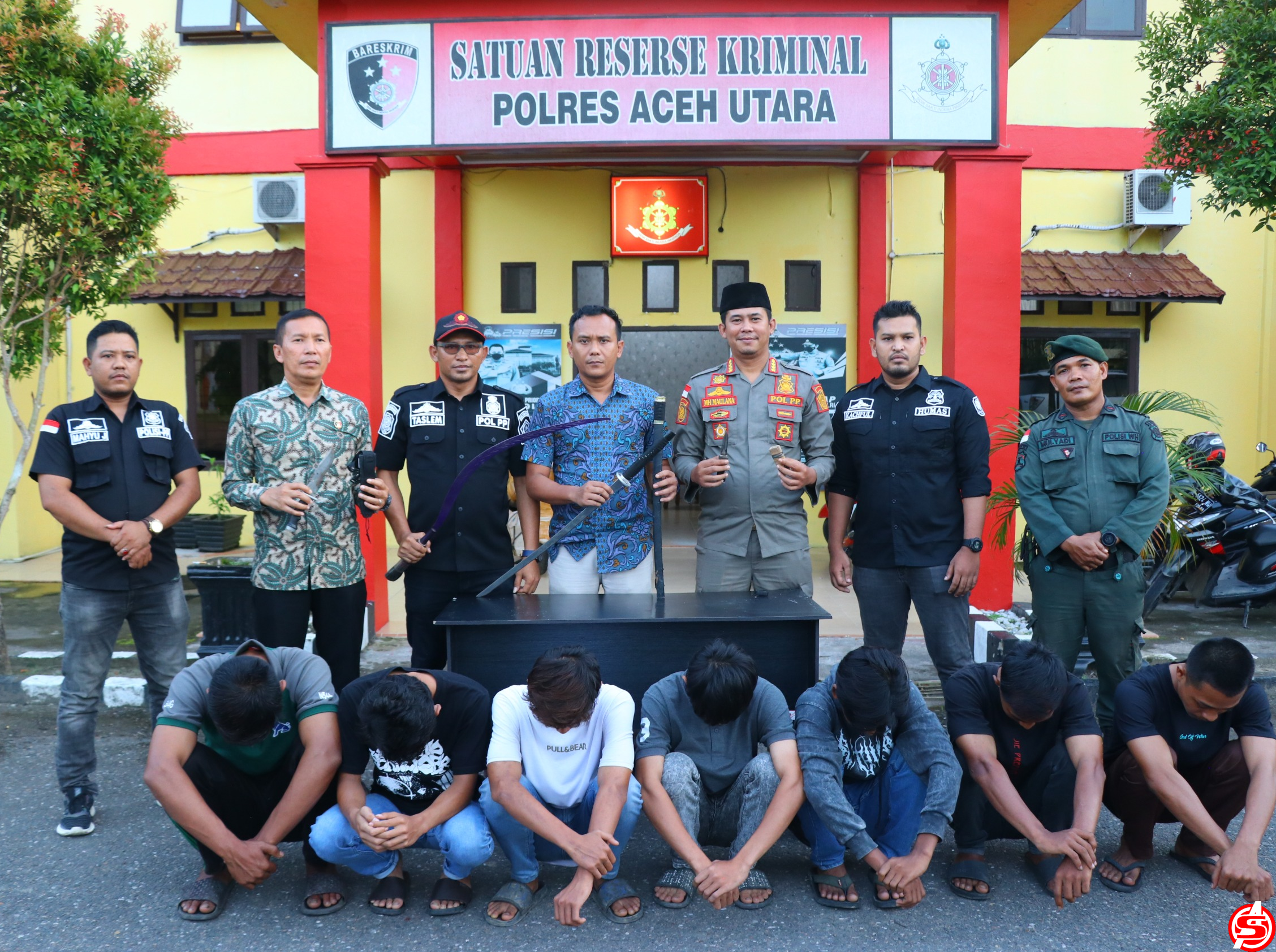 ASPOST.ID- Satuan Reskrim Polres Aceh Utara langsung bergerak cepat untuk mengamankan 7 orang remaja yang swafoto dengan memegang senjata tajam (Sajam) viral dimedia sosial, pada Kamis (18/1) malam.