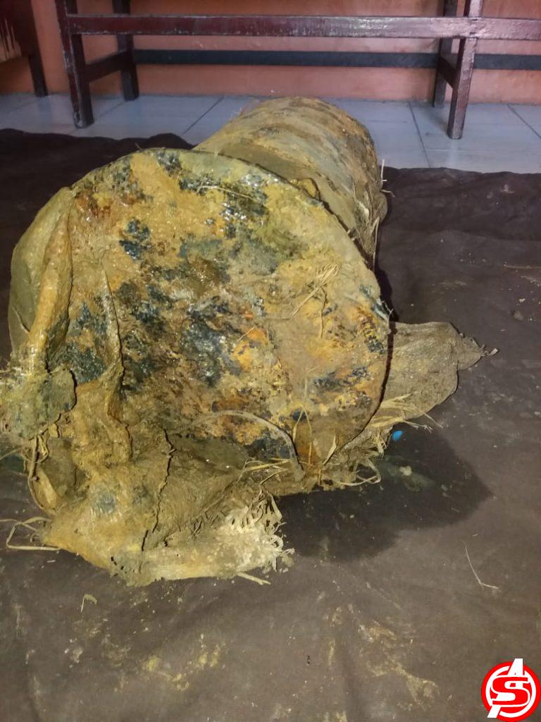 Bom rakitan itu sudah berkarat yang di perkirakan berukuran 50 cm x 10 cm dan di lengkapi kabel listrik warna merah hitam. (as2)