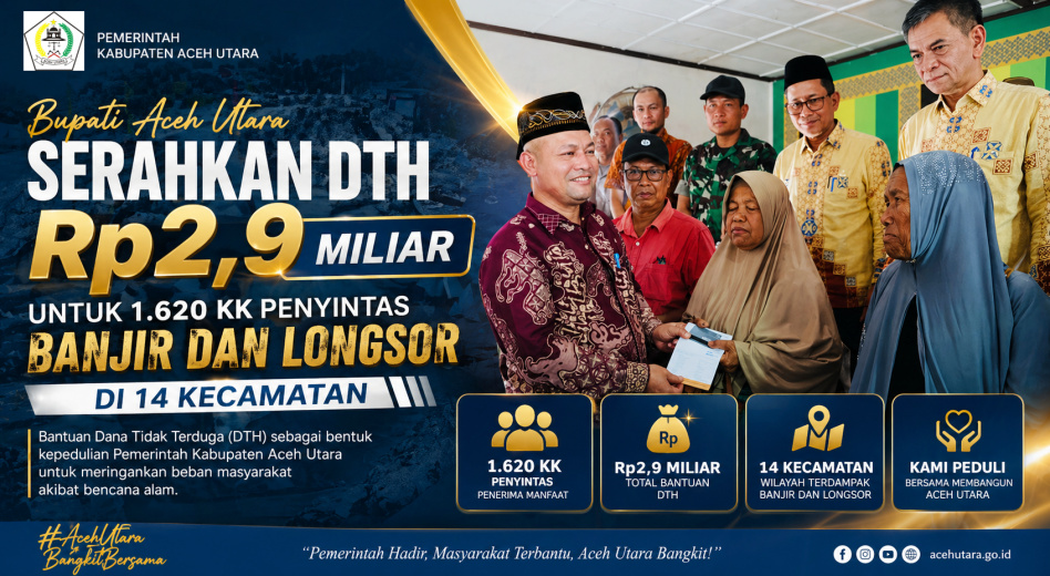 “Bupati Aceh Utara hari ini telah menyerahkan DTH secara simbolis kepada penyintas banjir. Selanjutnya, proses pencairan dilakukan langsung ke rekening masing-masing penerima manfaat,” ujarnya.