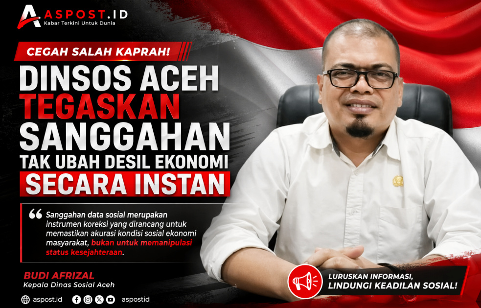 ASPOST.ID-Pemerintah Aceh melalui Dinas Sosial menegaskan komitmennya dalam menjaga integritas data penerima bantuan sosial, dengan menekankan bahwa mekanisme pengajuan sanggahan bukanlah jalan instan untuk memperoleh akses bansos.