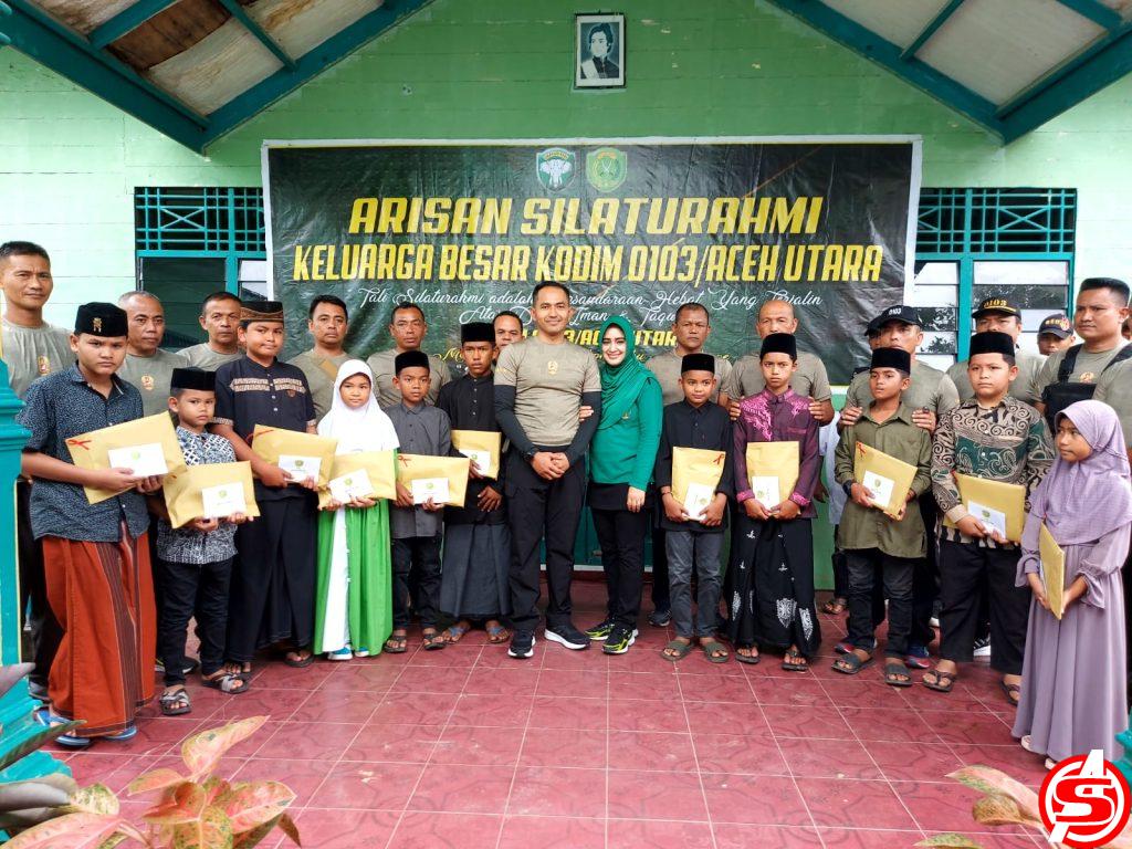 Selain memberikan ibadah umrah secara gratis, Dandim 0103/Aut beserta Ketua Persit KCK Cab XX Dim 0103, juga memberikan santunan dan hadiah kepada anak yatim dan anak asuh yatim Dandim dan Danramil. (asp/ril)