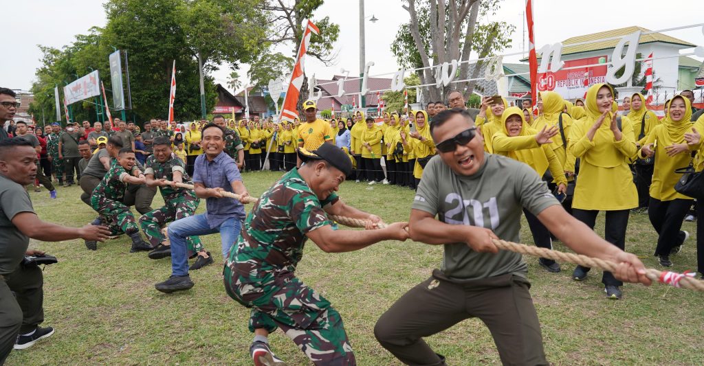ASPOST.ID- Suasana penuh keceriaan menyelimuti Lapangan Jenderal Sudirman, Korem 011/Lilawangsa, Sabtu (16/8/2025), saat Komandan Korem (Danrem) 011/Lilawangsa, Kolonel Inf Ali Imran, ikut ambil bagian dalam lomba tarik tambang bersama prajurit dan keluarga besar Korem.