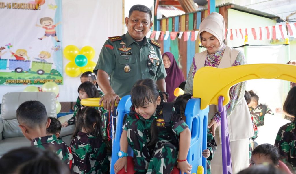 Kolonel Ali Imran menjelaskan, bantuan ini merupakan bagian dari upaya TNI dalam mendukung tumbuh kembang anak sejak dini, sekaligus menumbuhkan semangat belajar anak melalui pendekatan yang menyenangkan.