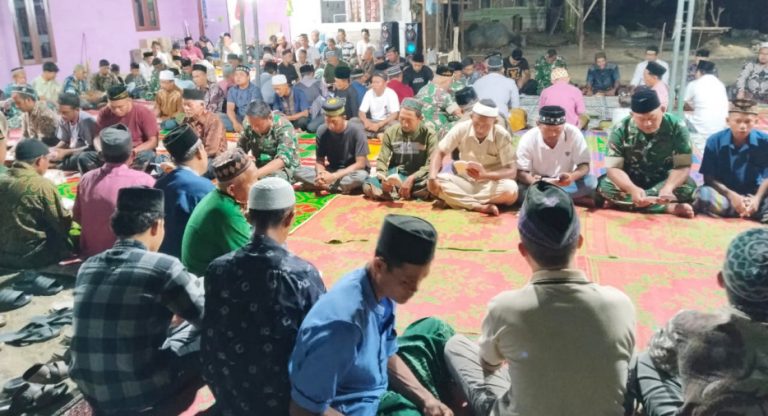Ratusan warga bersama jajaran Tentara Nasional Indonesia (TNI) dari Koramil 27/GRP larut dalam suasana khidmat saat menggelar doa bersama dan pembacaan Surah Yasin untuk mengenang almarhum Serka Sukarman bin Amad Supriadi.