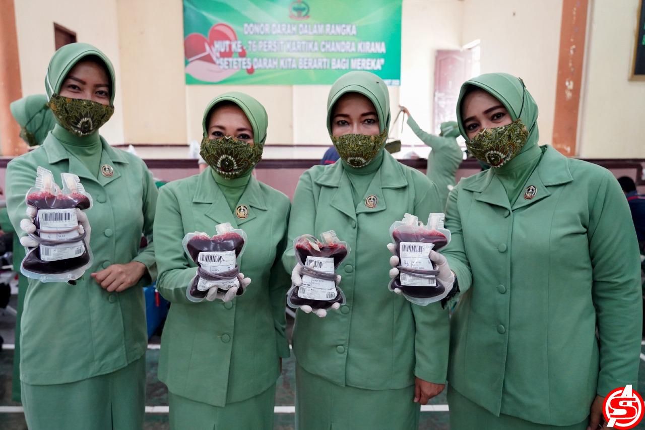 Lebih lanjut Kasrem mengatakan, donor darah digelar selain bagian memperingati HUT Ke-76 Persit, juga dalam membantu memenuhi kesediaan stok darah di PMI yang mulai kosong, apalagi sebentar lagi akan memasuki bulan suci ramadhan, tentunya sangat membutuhkan, terangnya.
