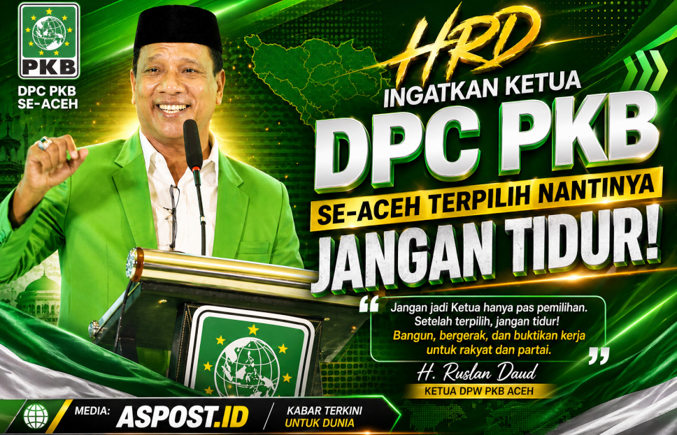 ASPOST.ID- Ketua DPW Partai Kebangkitan Bangsa (PKB) Aceh, H.Ruslan Daud, menegaskan pentingnya disiplin, soliditas, dan kerja aktif bagi seluruh calon Ketua Dewan Pimpinan Cabang (DPC) PKB di kabupaten/kota se-Aceh.
