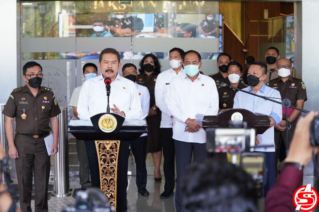 ASPOST.ID- Jaksa Agung RI Burhanuddin didampingi Jaksa Agung Muda Intelijen Dr. Amir Yanto, Jaksa Agung Muda Tindak Pidana Khusus Dr. Febrie Adriansyah, Kepala Pusat Penerangan Hukum Leonard Eben Ezer Simanjuntak, Asisten Umum Jaksa Agung (ASUM) Kuntadi, dan Asisten Khusus Jaksa Agung (ASUS) Hendro Dewanto menyampaikan perkembangan perkara dugaan tindak pidana korupsi pada PT. Garuda Indonesia (persero) Tbk.