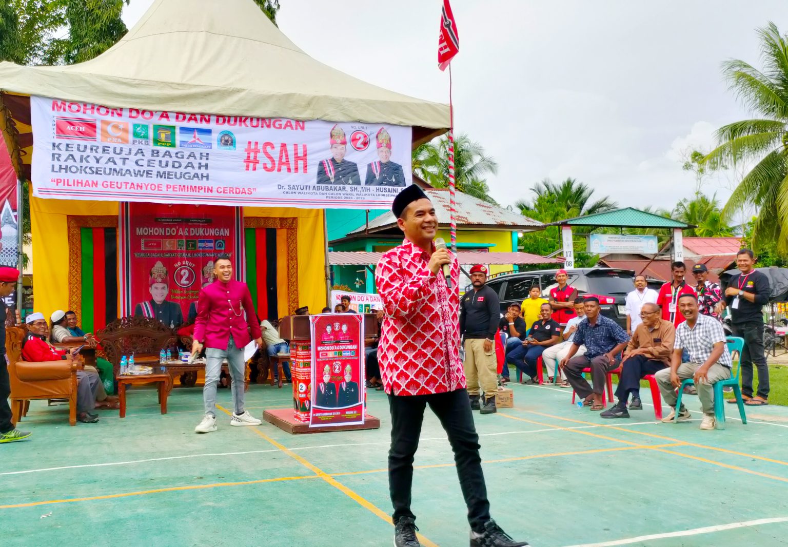 ASPOST.ID- Calon Walikota Lhokseumawe Sayuti Abubakar bersama Calon Wakil Walikota, Husaini POM melakukan kampanye dialogis di Gampong Blang Poroh, Kecamatan Muara Dua, Kota Lhokseumawe, pada Kamis (21/11/2024) sore.