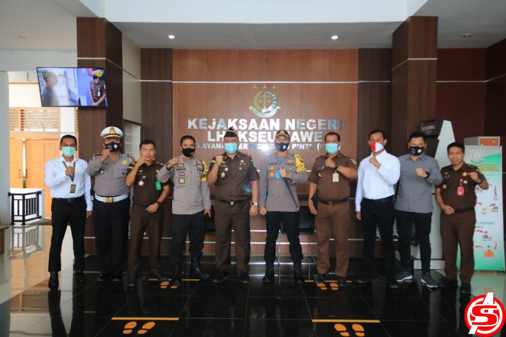ASPOST.ID- Kapolres Lhokseumawe AKBP Eko Hartanto bersama Wakapolres Kompol Ahzan dan sejumlah perwira melakukan kunjungan kerja (Kunker) sekaligus silaturrahmi ke Kejaksaan Negeri Lhokseumawe, Kamis (4/6) sekira pukul 10.30 WIB.