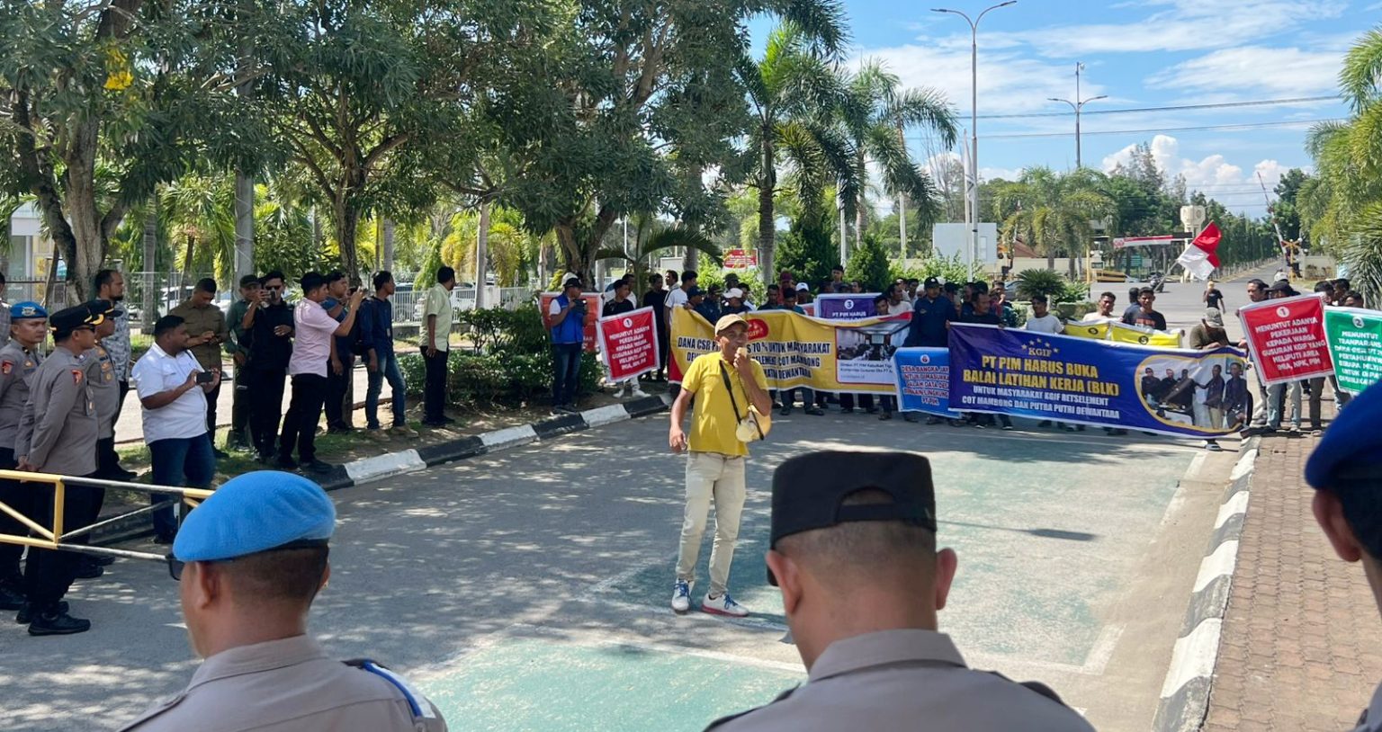 ASPOST.ID- Puluhan warga yang tergabung dalam Komunitas Gusuran Industri Fertilizer (KGIF) menggelar aksi unjuk rasa damai di depan gerbang utama PT Pupuk Iskandar Muda (PIM), Kecamatan Dewantara, Kabupaten Aceh Utara, Kamis (2/10). Aksi ini merupakan bentuk kekecewaan terhadap manajemen PT PIM dan Komisaris Utama Marzuki Daud, yang dinilai ingkar janji terhadap komitmen dialog dan penyelesaian tuntutan warga terdampak.