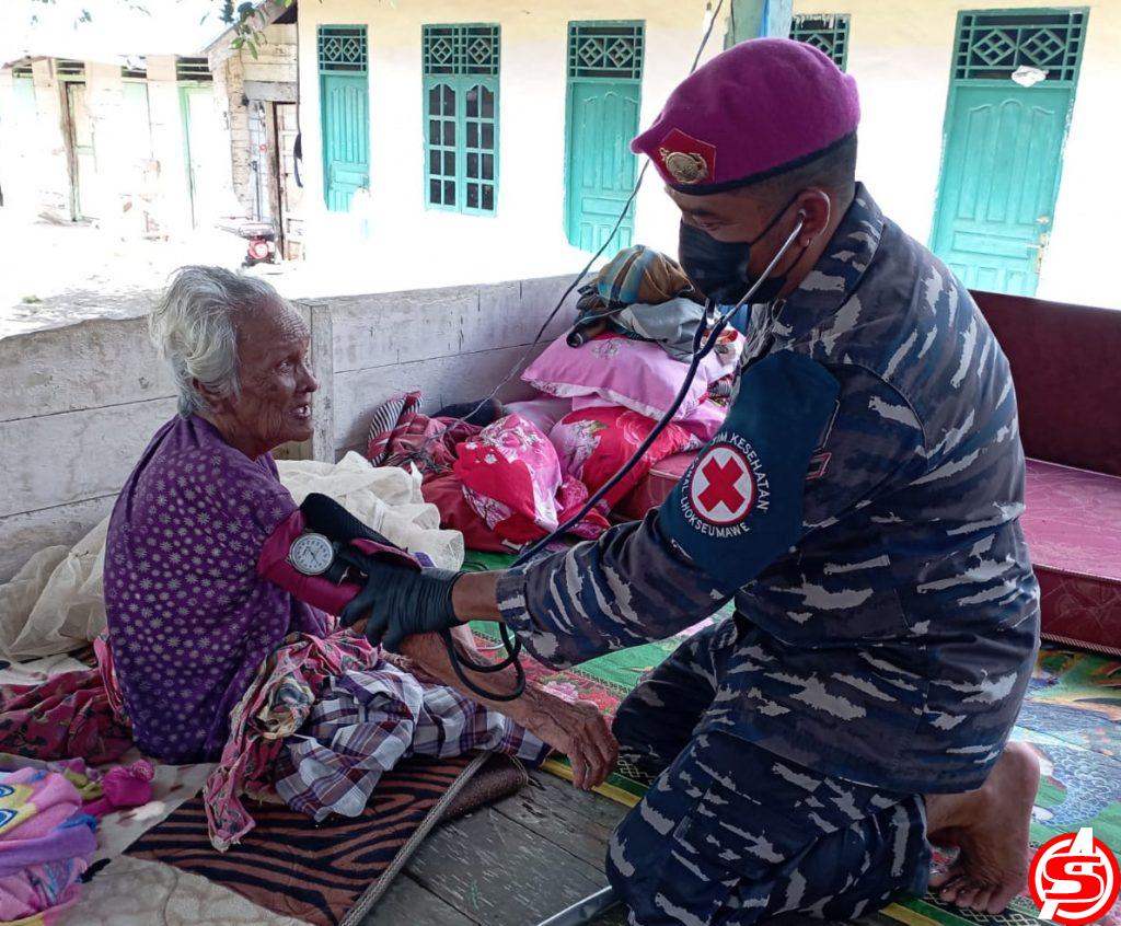 ASPOST.ID- Untuk menjaga kesehatan masyarakat korban banjir di Aceh Utara, Tim Satgas Banjir dan Tim Medis TNI AL Lanal Lhokseumawe ikut ambil peran untuk melakukan pengobatan gratis korban banjir, pada Selasa (4/1/2022).