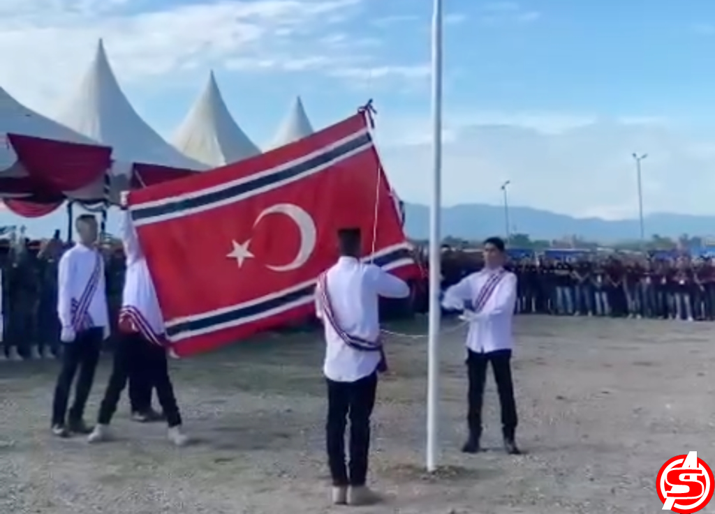 Gema azan berkumandang, menandakan bendera bintang bulan dikibarkan oleh pasukan pengibar bendera.