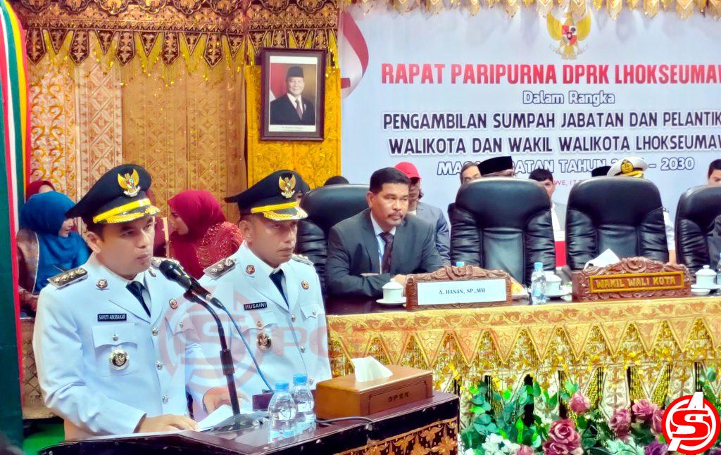 Dalam sambutannya, Wali Kota Lhokseumawe, Sayuti Abubakar, mengungkapkan rasa syukur atas amanah yang diberikan oleh masyarakat Kota Lhokseumawe, sehingga dapat mengemban tugas sebagai Wali Kota dan Wakil Wali Kota Lhokseumawe untuk lima tahun ke depan.