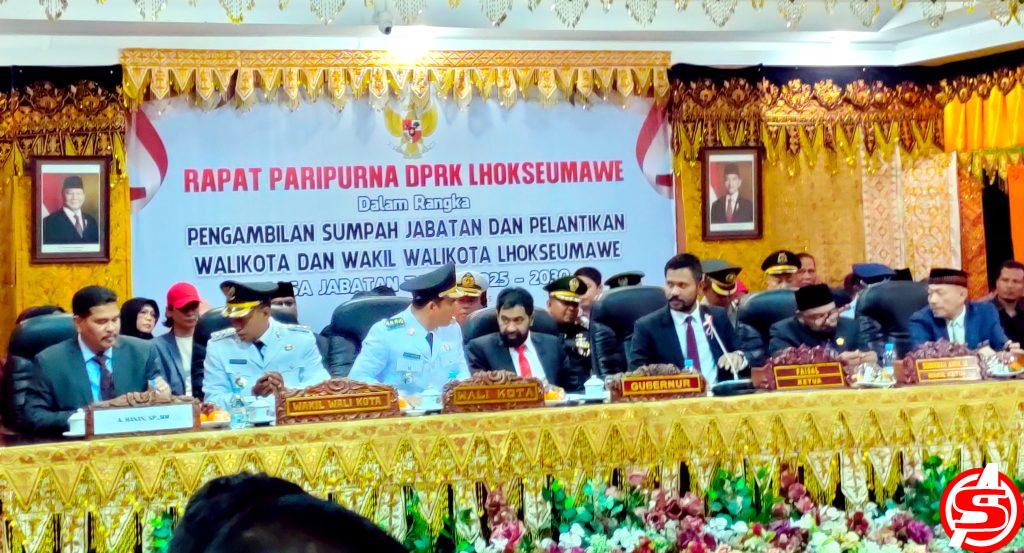 Acara ini berlangsung dalam rangka Pengambilan Sumpah Jabatan dan Pelantikan Wali Kota dan Wakil Wali Kota Lhokseumawe, Senin, sore (17/2/2025).