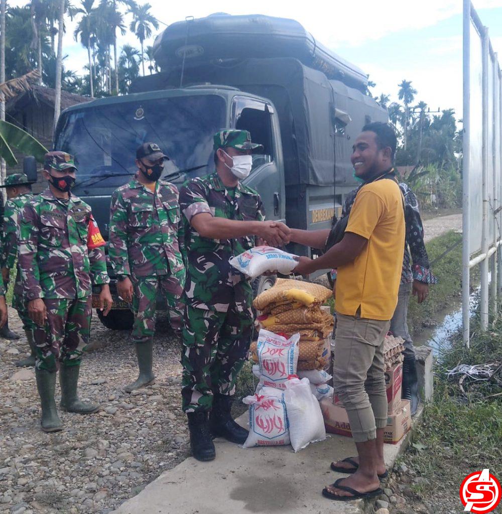 ASPOST.ID- Kodim 0103/Aceh Utara menyerahkan bantuan sembako, selimut, kain sarung serta pengobatan gratis dari Denkes Lhokseumawe untuk masyarakat korban terdampak banjir di Kecamatan Langkahan, pada Rabu (5/1/2022).