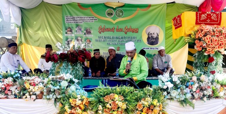 ASPOST.ID- Masyarakat Kota Lhokseumawe bersama jamaah Tarbiyah Islamiyah Mazhab Syafi’i Aceh memperingati 1.243 tahun wafat Imam Syafi’i yang dirangkaikan dengan Haul Tarbiyah Islamiyah Mazhab Syafi’i Aceh ke-12, di Pendopo Tarbiyah Islamiyah Mazhab Syafi’i, Desa Meunasah Mee, Kecamatan Muara Dua, Kota Lhokseumawe, Rabu (14/1).