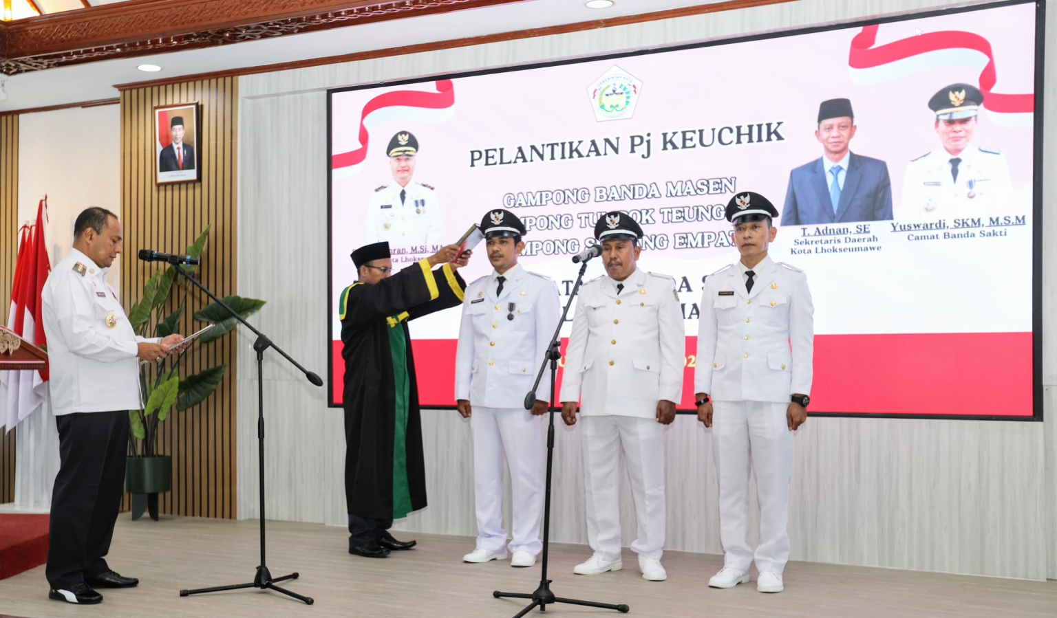 ASPOST.ID- Penjabat Wali Kota Lhokseumawe, Dr. Drs. Imran, M.Si, MA.Cd mengambil sumpah sekaligus melantik tiga penjabat kepala desa (Keuchik) di Kecamatan Banda Sakti pada Rabu (25/10). Pelantikan itu dilakukan di Aula Kantor Wali Kota Lhokseumawe sebagai bentuk transisi untuk memastikan pelayanan publik di tingkat gampong berjalan lancar hingga Pemilihan Keuchik Langsung (Philchiksung) dapat digelar.