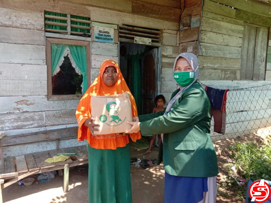 ASPOST.ID- Anggota DPRK Lhokseumawe Hj Nurhayati Aziz bersama Pengurus DPC dan DPAC PKB Kota Lhokseumawe membagikan ratusan paket sembako dan ribuan masker kepada masyarakat di Lhokseumawe, Senin (1/6).