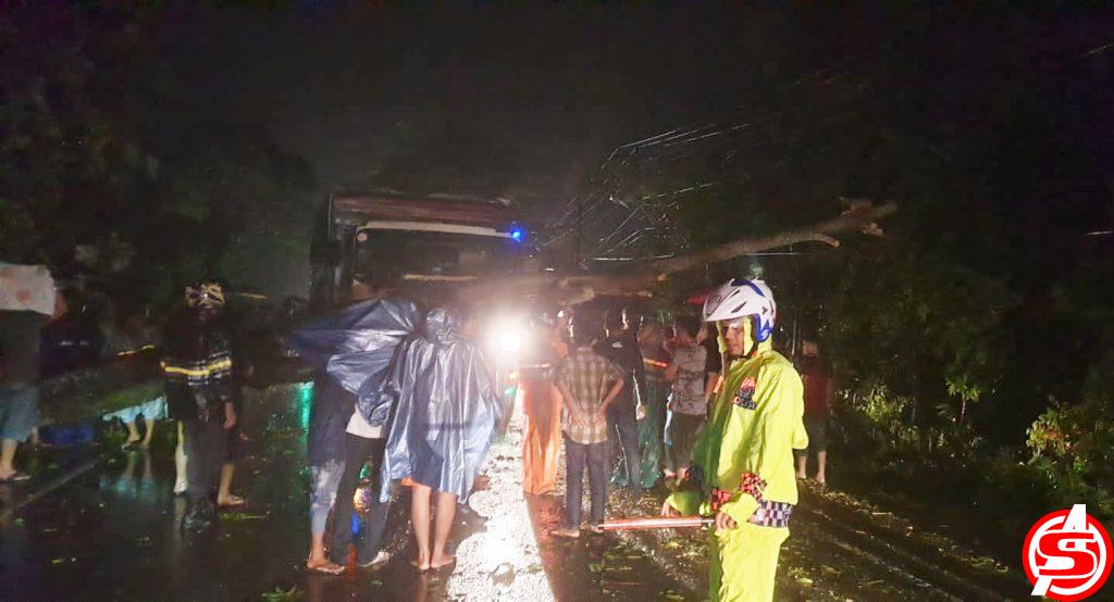 ASPOST.ID- Hujan deras yang disertai angin kencang melanda kawasan Kabupaten Aceh Utara, pada Sabtu (7/5/2022) malam. Kondisi cuaca ekstrem itu, mengakibatkan tumbangnya sebuah pohon besar ke badan jalan lintas Medan-Banda Aceh, Gampong Meunasah Alue Guntoe Kecamatan Syamtalira Aron, Aceh Utara.