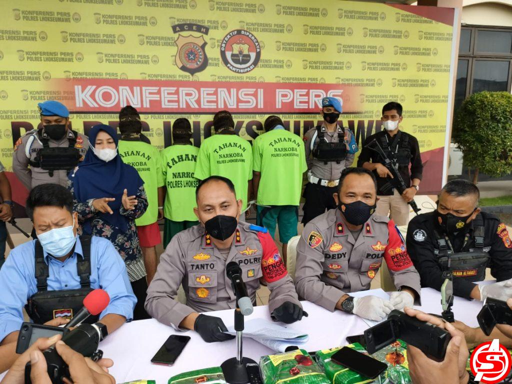 Kapolres Lhokseumawe AKBP Eko Hartanto SIK MH dalam konferensi pers yang berlangsung di halaman Mapolres Lhokseumawe, Kamis (18/11/2021) mengatakan, adapun tersangka yang diamankan tersebut yaitu berinisial DS (38), TA (59) dan R (36) warga Kecamatan Muara Satu serta AS (33) warga Kecamatan Jangka, Kabupaten Bireuen.