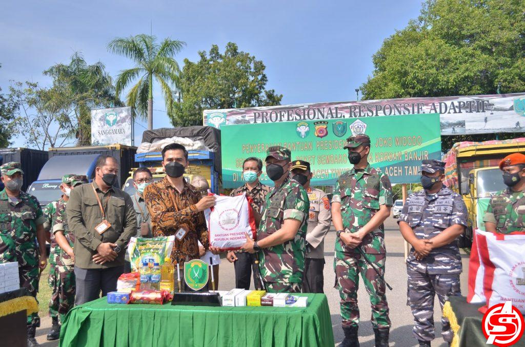Disela kegiatan, Danrem 011/Lilawangsa Kolonel Inf Bayu Permana kepada sejumlah wartawan mengatakan, bantuan sejumlah 15.000 paket sembako dari Presiden RI Joko Widodo akan disalurkan kepada korban terdampak banji di Tiga Kabupaten, yakni Aceh Utara, Aceh Timur dan Aceh Tamiang.