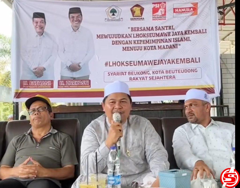 Pertemuan tersebut mengusung tema “Bersama Santri Mewujudkan Lhokseumawe Jaya Kembali, Dengan Kepemimpinan Islam Menuju Kota Madani,”. Dengan Motto Paslon Walikota-Wakil Walikota Lhokseumawe ini yang diusung oleh Partai Golkar dan Gerindra, “Syariat Beukong, Kota Beuteudong, Rakyat Sejahtera”.