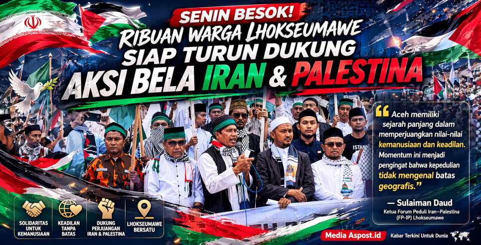 ASPOST.ID- Dukungan terhadap perjuangan kemanusiaan di Timur Tengah terus menggema hingga ke ujung barat Indonesia. Forum Peduli Iran–Palestina (FP-IP) Lhokseumawe menginisiasi aksi solidaritas besar yang akan dipusatkan di halaman Masjid Agung Islamic Center Lhokseumawe pada Senin besok (20/4), dengan melibatkan berbagai elemen masyarakat.