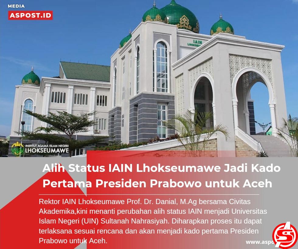 ASPOST.ID- Institut Agama Islam Negeri (IAIN) Lhokseumawe secara resmi beralih bentuk menjadi Universitas Islam Negeri (UIN) Sultanah Nahrasiyah. Perubahan bentuk kelembagaan ini berdasarkan Peraturan Presiden (Perpres)…