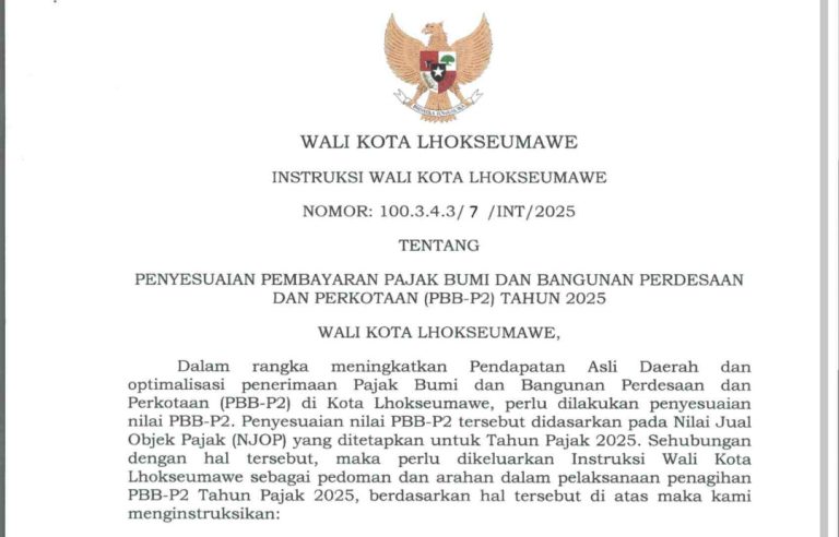 ASPOST.ID- Untuk memperkuat penerimaan Pendapatan Asli Daerah (PAD) sekaligus menjaga stabilitas ekonomi warga, Wali Kota Lhokseumawe, Dr. Sayuti Abubakar, SH., MH., resmi mengeluarkan Instruksi Wali Kota…