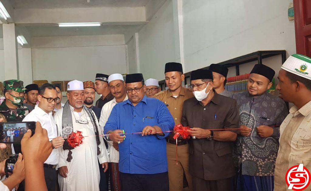 ASPOST.ID-Wakil Bupati Aceh Utara Fauzi Yusuf didampingi Kadis Pendidikan Dayah Tgk. Abdullah Hasbullah, S.Ag, M.S.M, Abati Buloh, Camat Tanah Jambo Aye dan para Ulama serta Pimpinan Dayah dan Perwakilan Bank Aceh memotong pita dalam rangka peresmian Toko Usaha yang dikelola oleh HATHAR Aceh Utara, pada Senin (31/1/2022).
