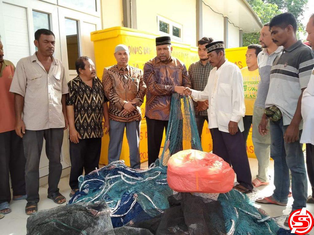 Bantuan lain juga diberikan kepada Ketua Kelompok Nelayan Pukat Darat, Gampong Blang Naleung Mameh, Kecamatan Muara Satu, dengan menyerahkan 1 unit jaring pukat darat.