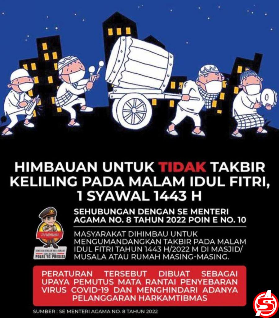 “Jadi, kami berharap agar masyarakat tidak melakukan takbir keliling atau pawai sesuai dengan imbauan Menteri Agama (Menag) Republik Indonesia (RI),” ucap Lalan melalui telepon seluler, Jumat (29/4).